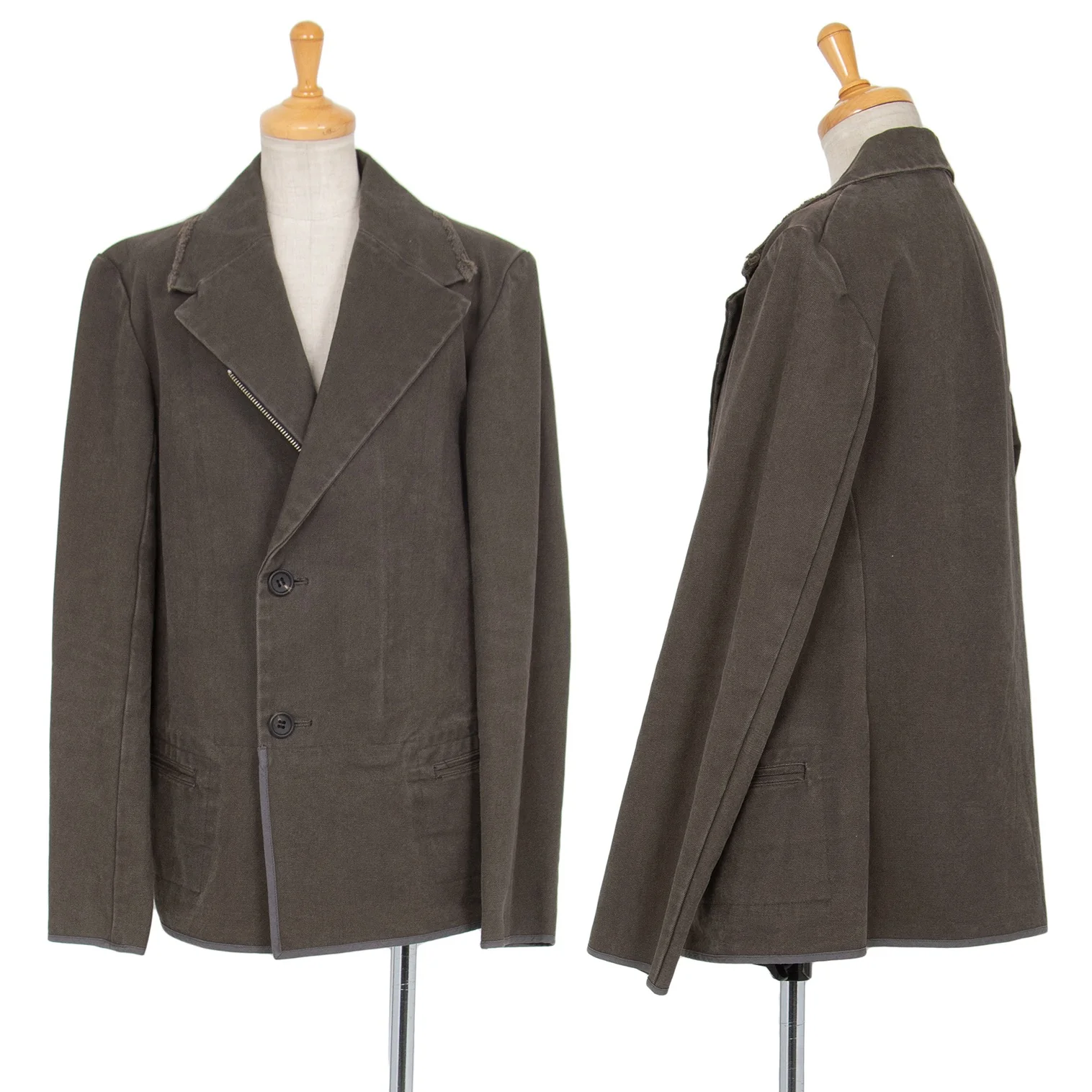 ワイズY's コットンキャンバスジップダブルジャケット 淡カーキ3