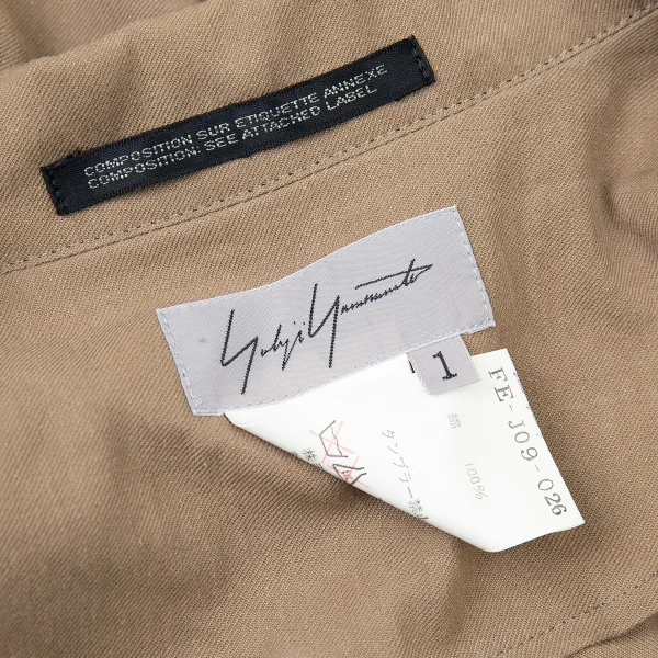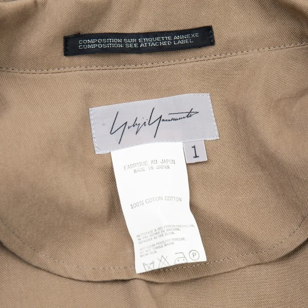 ヨウジヤマモト ファムYohji Yamamoto FEMME コットンボタンレスシャツジャケット モカ1
