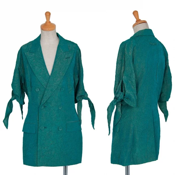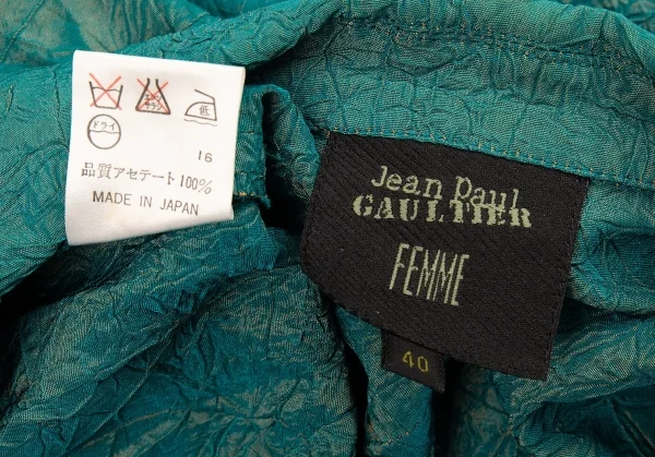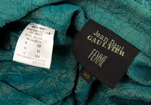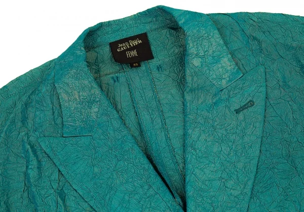 ジャンポールゴルチエ ファムJean Paul GAULTIER FEMME シワ加工光沢変形ジャケット エメラルドグリーン40