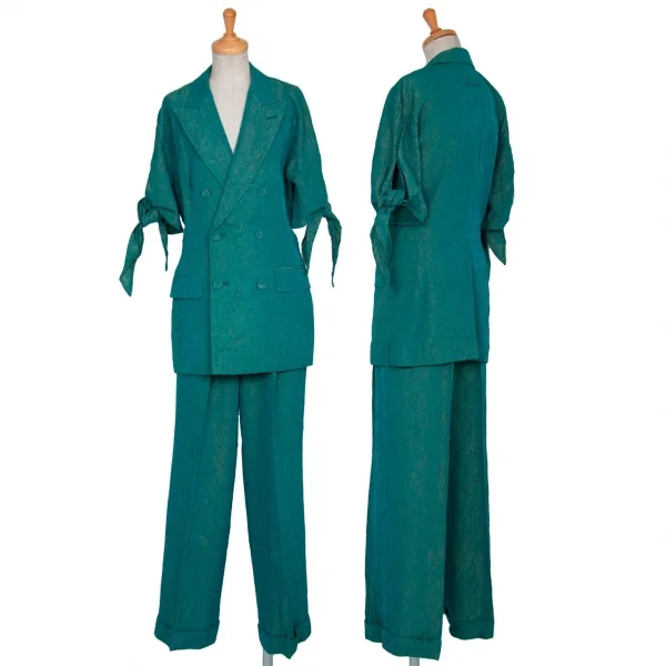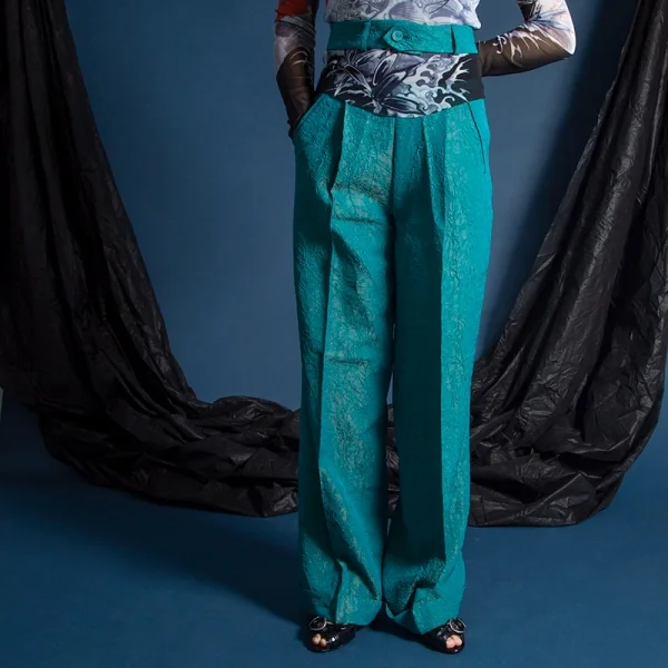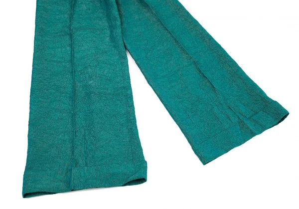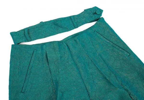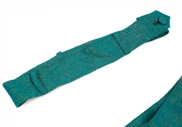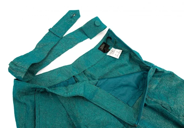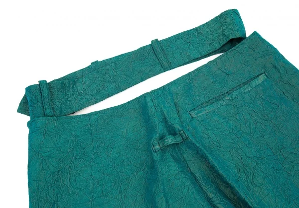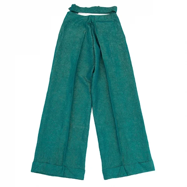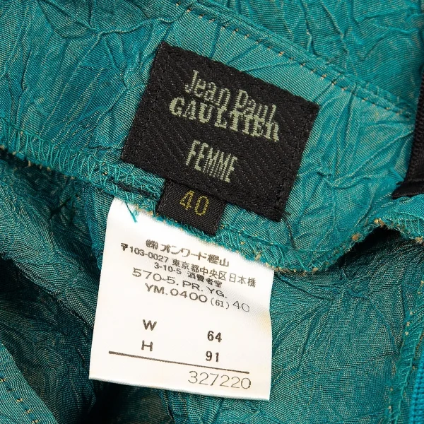 ジャンポールゴルチエ ファムJean Paul GAULTIER FEMME シワ加工光沢変形ベルトパンツ エメラルドグリーン40