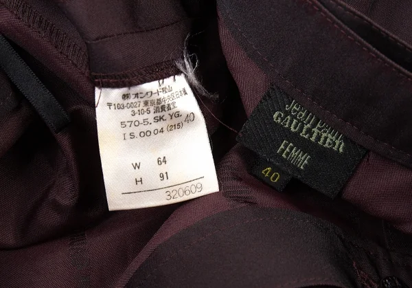 ジャンポールゴルチエ ファムJean Paul GAULTIER FEMME ロゴラインデザインポリラップスカート チョコレート40