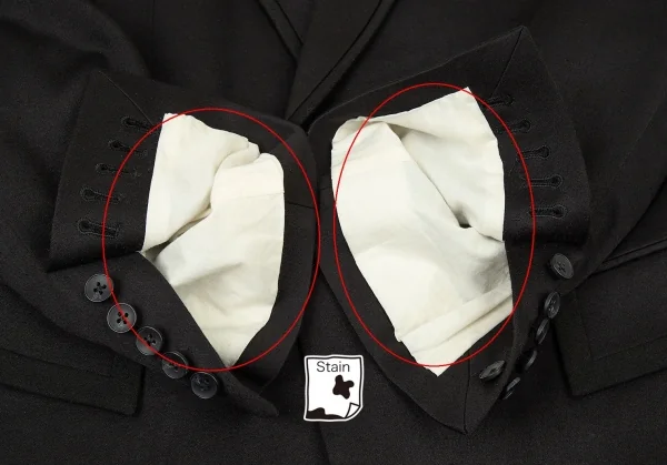 生地のスレは加工によるものです。袖裏に薄汚れがあります(画像参照)。その他に目立ったシミ、汚れ、ほつれ等ありません。クリーニング済み
