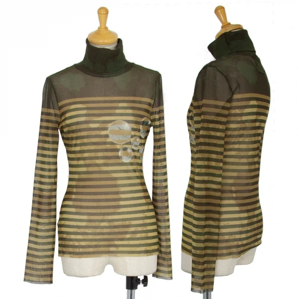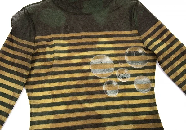 ジャンポールゴルチエJean Paul GAULTIER PARIS バブルボーダープリントパワーネットハイネックカットソー 緑40
