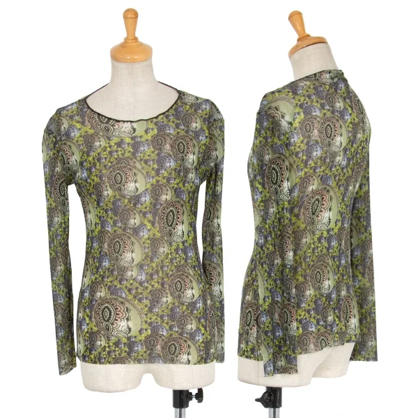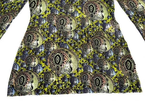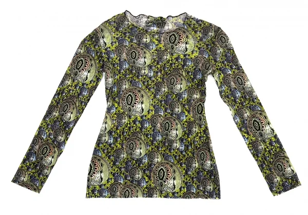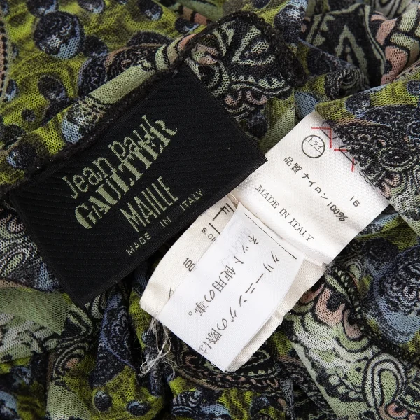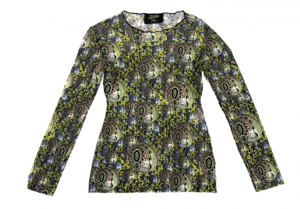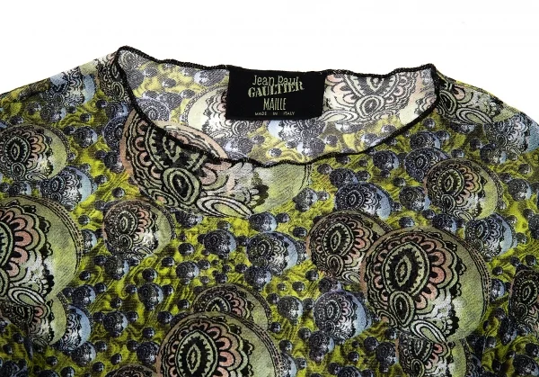 ジャンポールゴルチエマイユJean Paul GAULTIER MAILLE サイケデリックプリントパワーネットカットソー グリーンマルチ40(S)