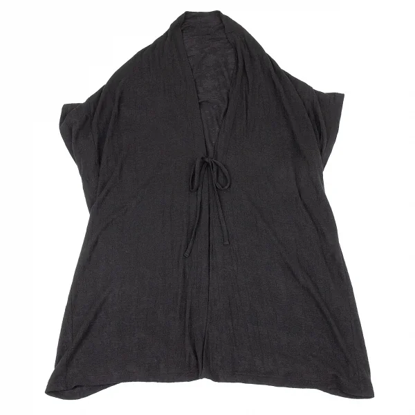 ワイズY's ボタニカルジャガードリネンコットンロングカーディガン 黒2