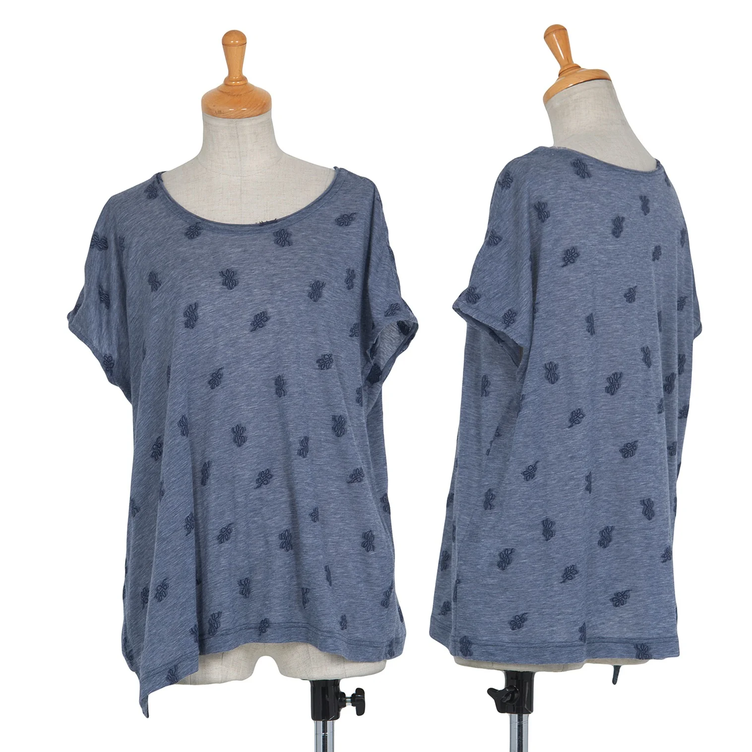 ワイズY's 総柄刺繍ノースリーブ 杢ブルー2