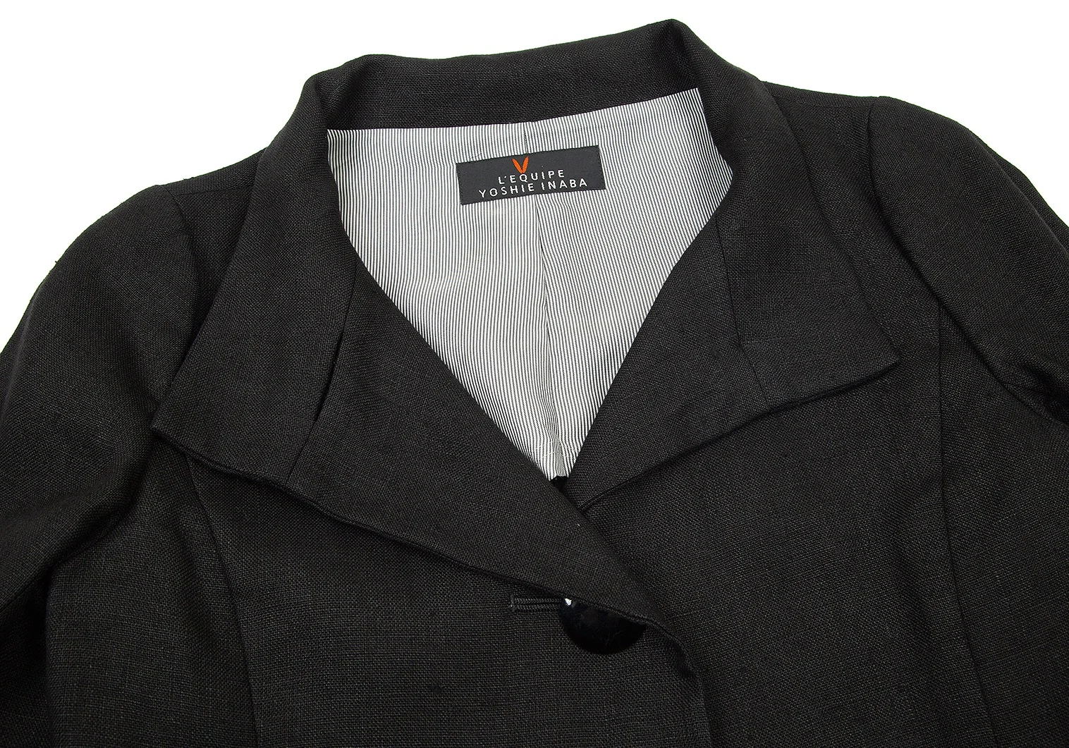 レキップヨシエイナバL'EQUIPE YOSHIE INABA リネンスタンドカラービッグボタンジャケット 黒38
