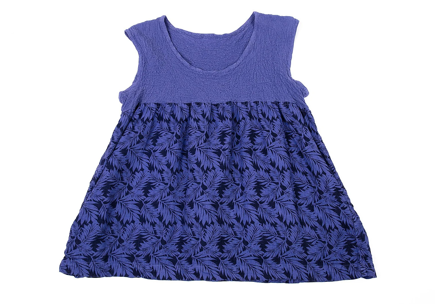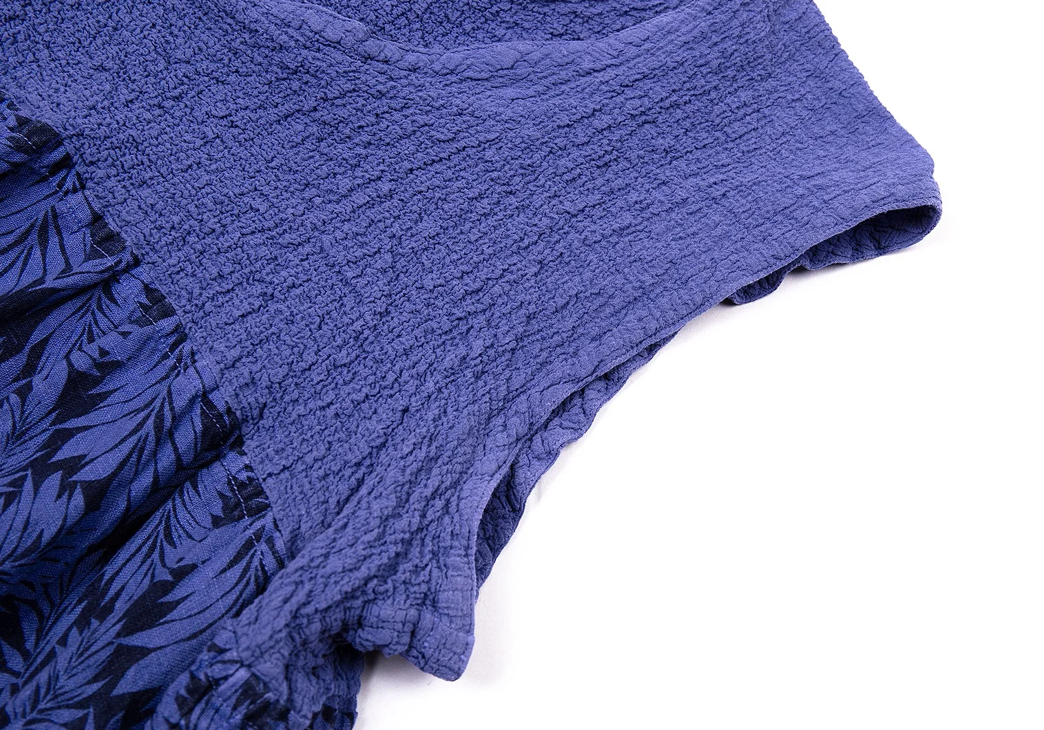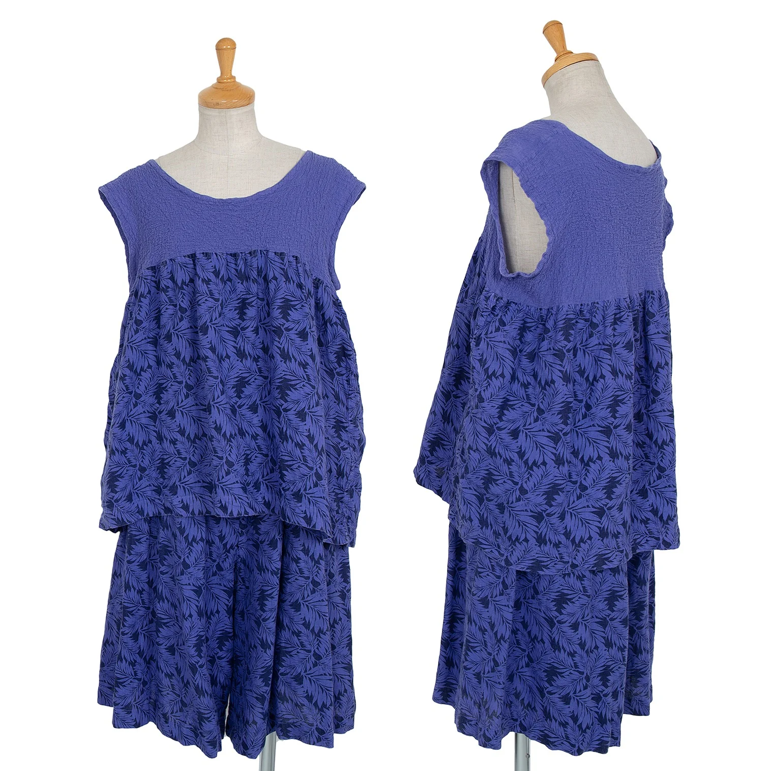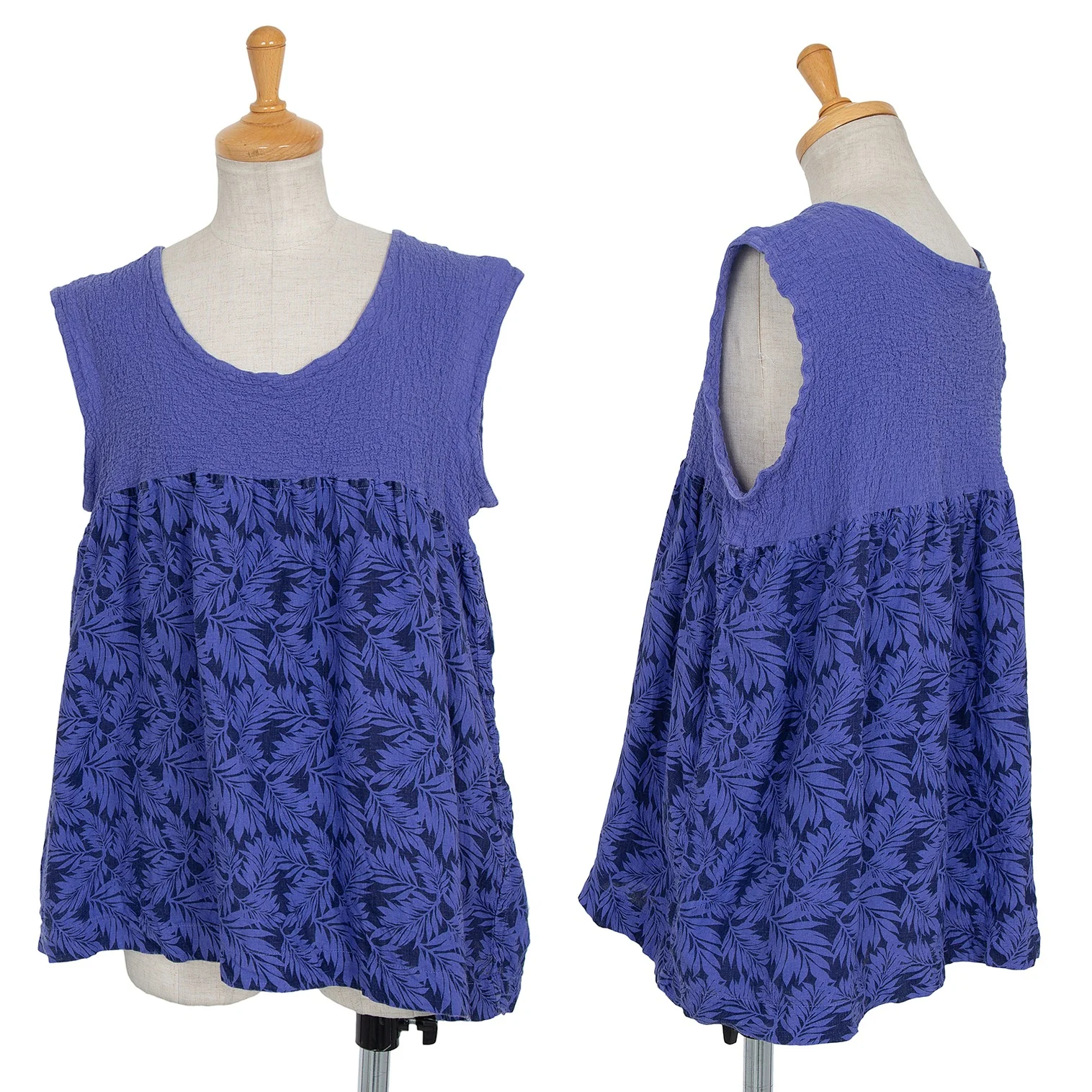 イッセイミヤケ ミーISSEY MIYAKE me カリフラワー切替ボタニカルプリントノースリーブ 青M位