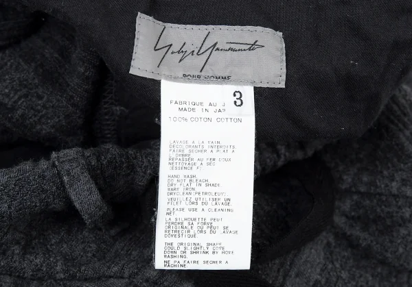 ヨウジヤマモト プールオムYohji Yamamoto POUR HOMME コットンジャガードサルエルパンツ グレー3