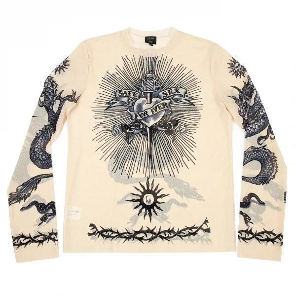 ジャンポールゴルチエ オムJean Paul GAULTIER HOMME タトゥープリントパワーネットカットソー ベージュ黒48