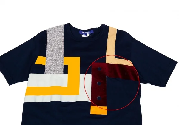 ジュンヤワタナベマン コムデギャルソンJUNYA WATANABE MAN COMME des GARCONS パッチプリントデザインTシャツ 紺他L