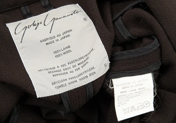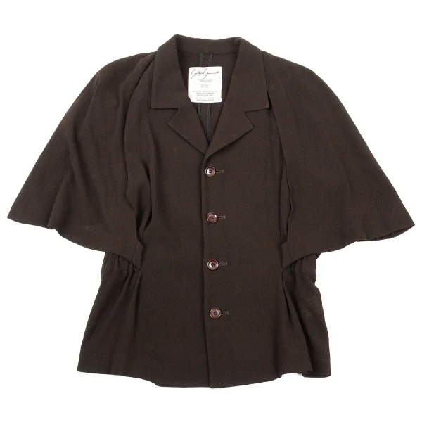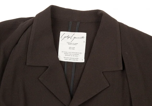 ヨウジヤマモト ファムYohji Yamamoto FEMME ウールジョーゼットショールデザインジャケット 茶S