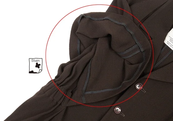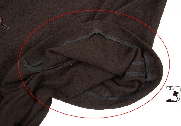 透け感のある生地です。袖裏パイピングに薄汚れがあります(画像参照)。その他に目立ったシミ、汚れ、ほつれ等ありません。クリーニング済み