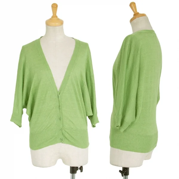 レキップ ヨシエイナバL'EQUIPE yoshie inaba ドルマンリネンボレロニットカーディガン グリーン38