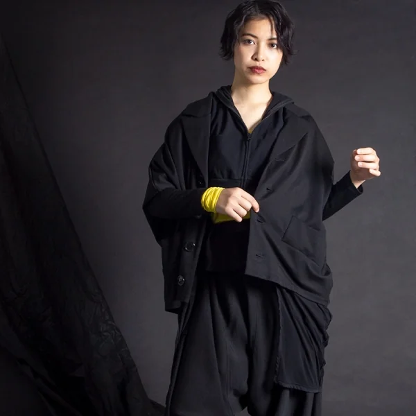 リミフゥLIMI feu シースルーレイヤードビッグボタンドルマンジャケット 黒S