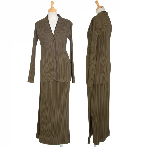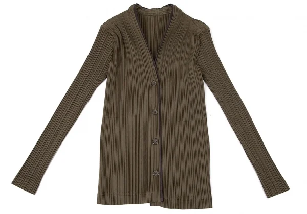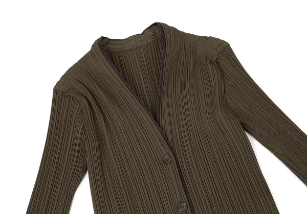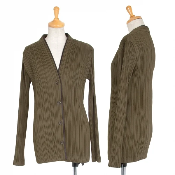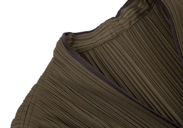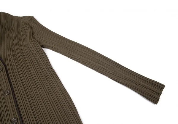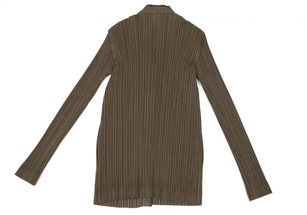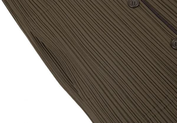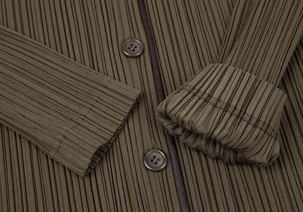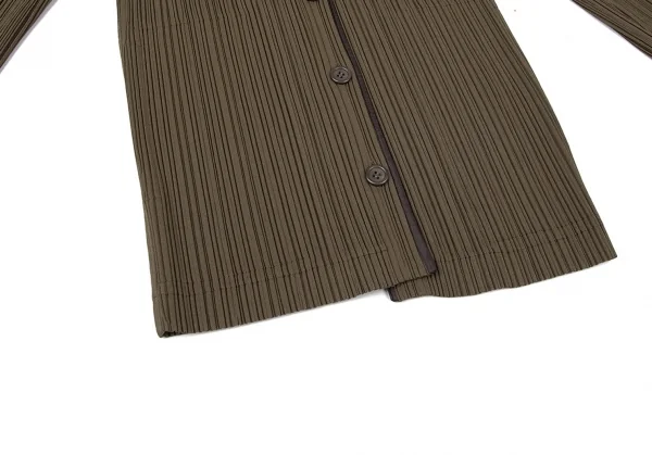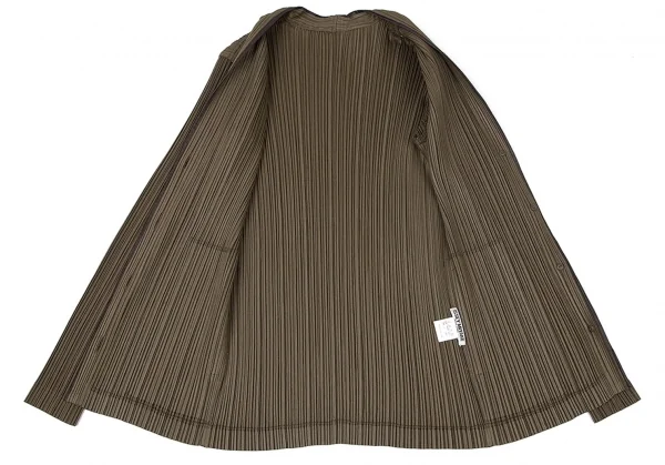 イッセイミヤケ ホワイトレーベルISSEY MIYAKE WHITELABEL プリーツノーカラージャケット カーキ2