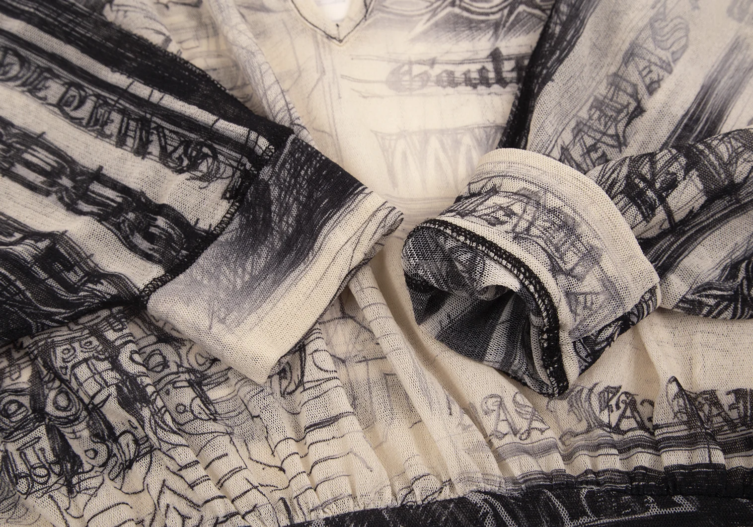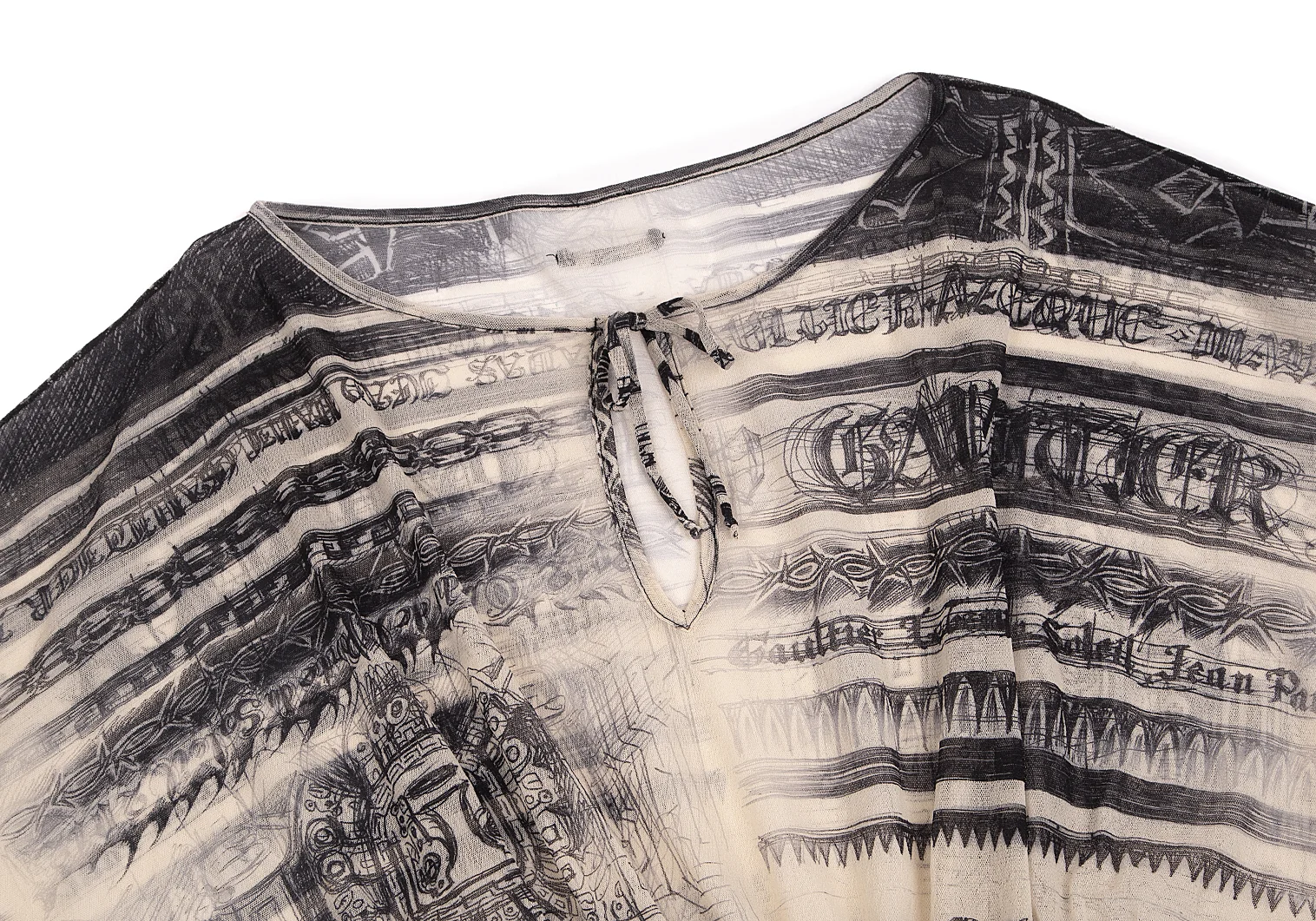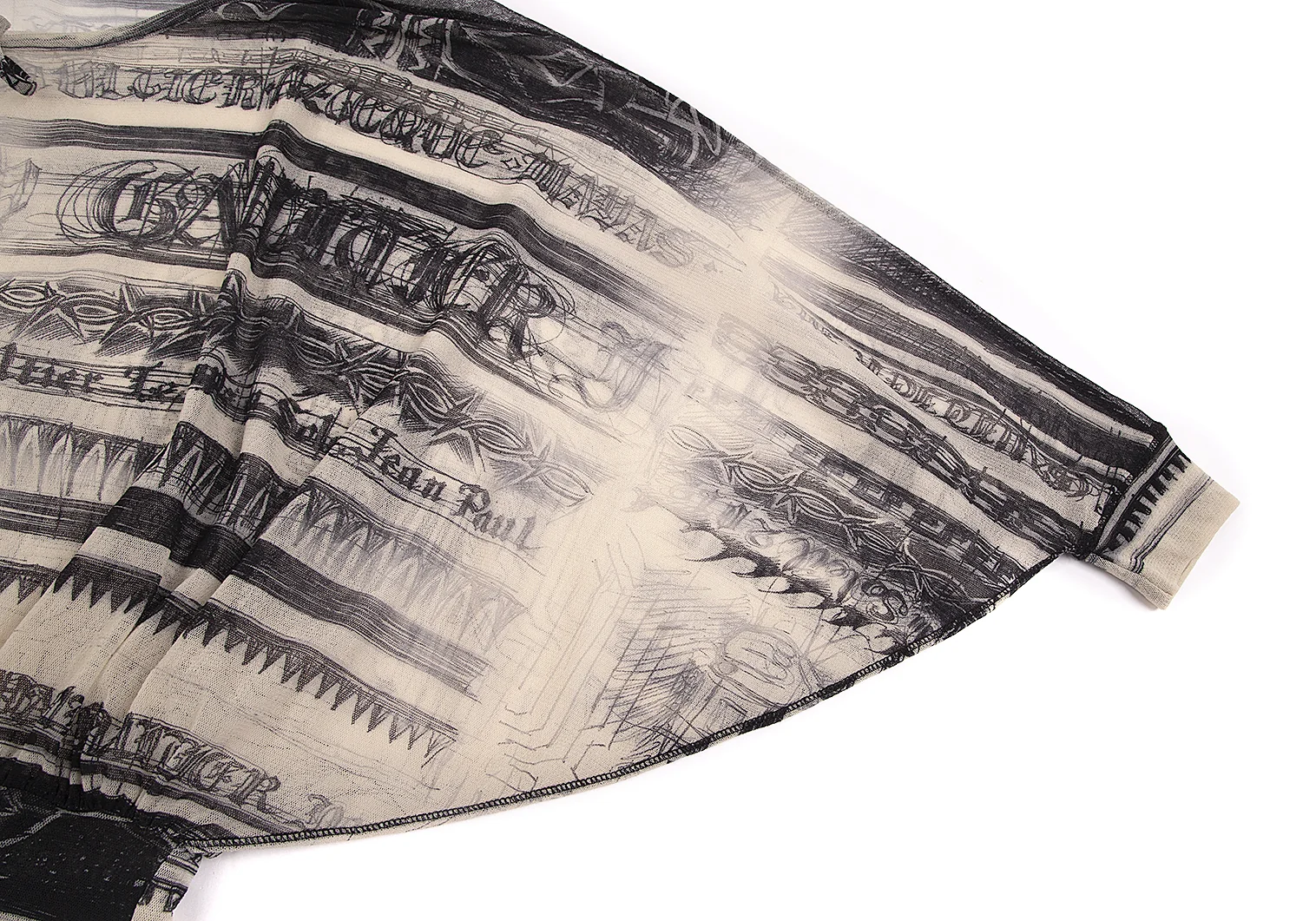ジャンポールゴルチエJean Paul GAULTIER レタリングプリントパワーネットドルマンカットソー ベージュ黒M位