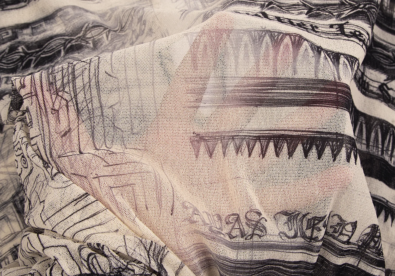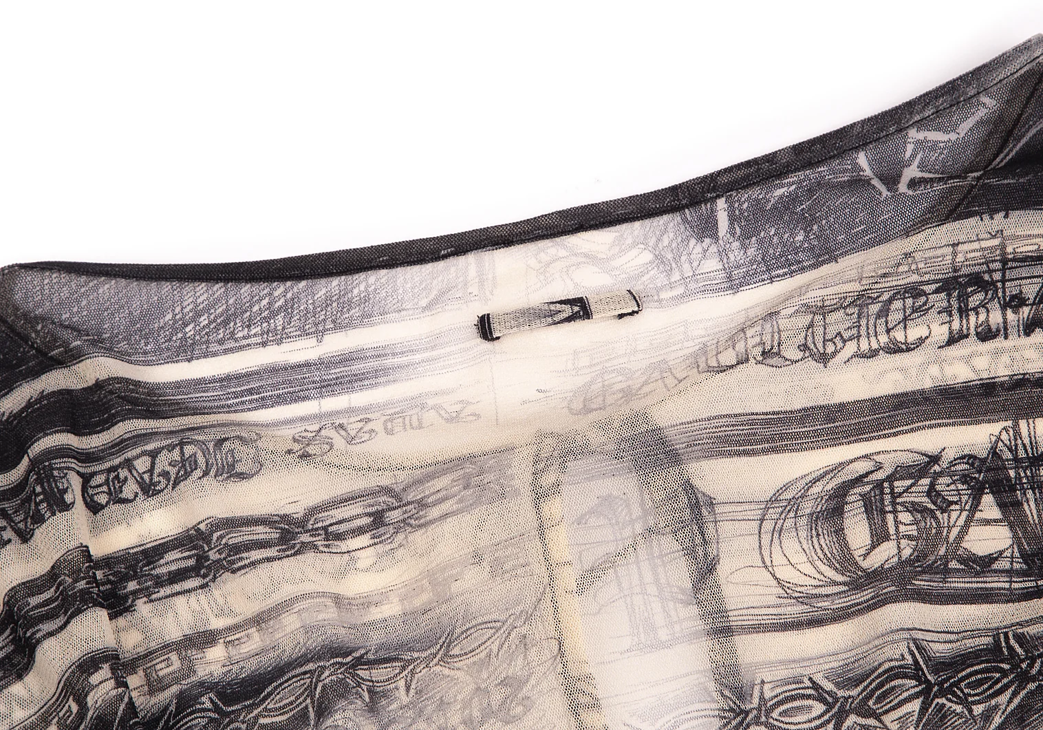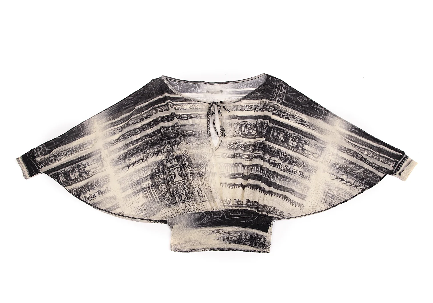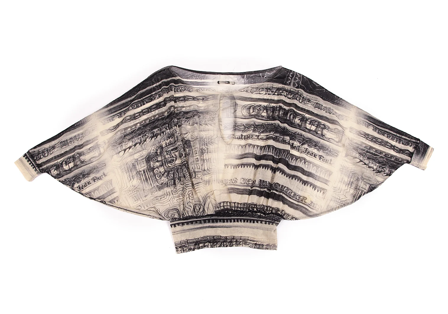 ジャンポールゴルチエJean Paul GAULTIER レタリングプリントパワーネットドルマンカットソー ベージュ黒M位