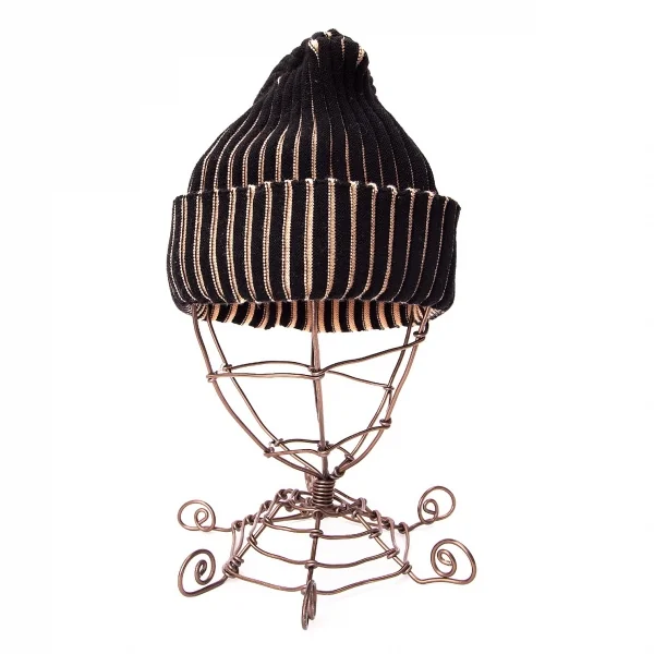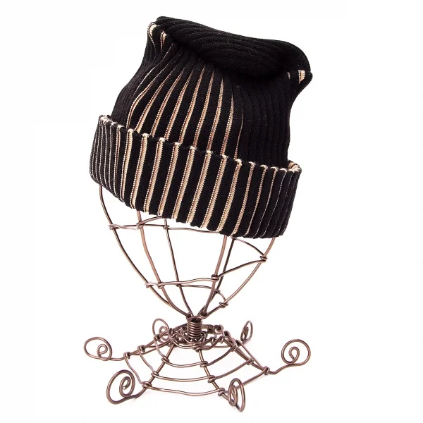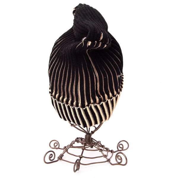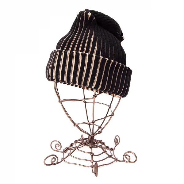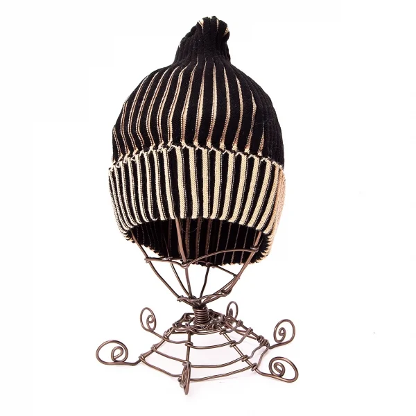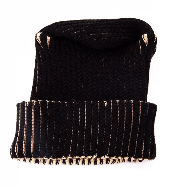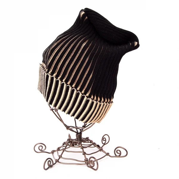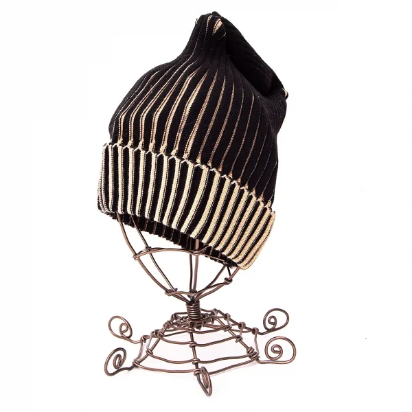 ジャンポールゴルチエJean Paul GAULTIER バイカラースクエアニットキャップ 黒ピンクベージュ57〜59