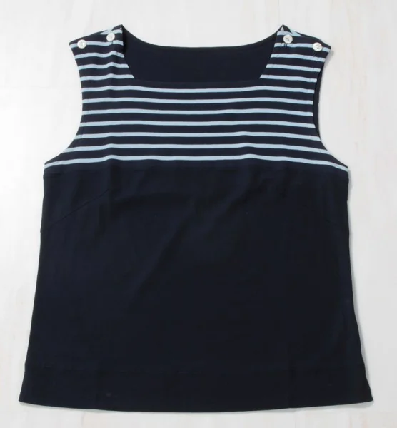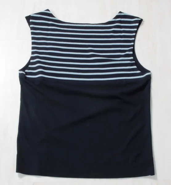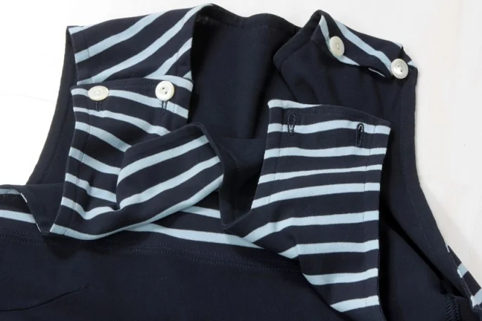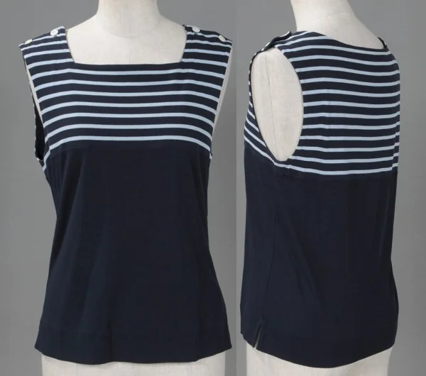 ヨシエ イナバ yoshie inaba スクエアネック綿ノースリーブボーダーカットソー 紺3