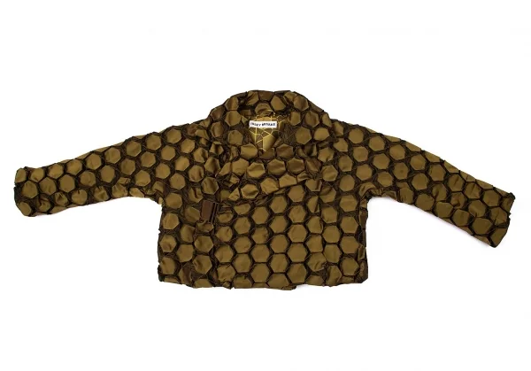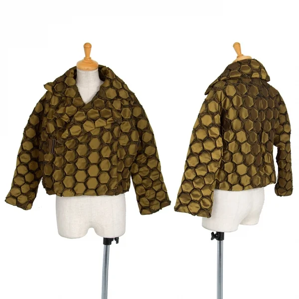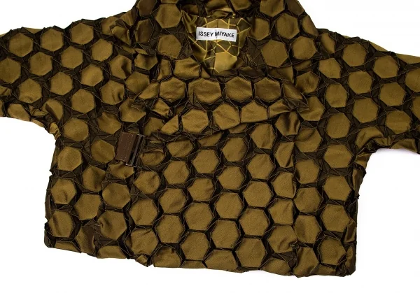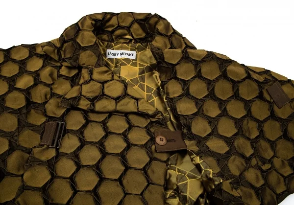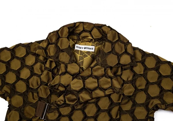 イッセイミヤケISSEY MIYAKE ハニカムプリーツショートジャケット ブロンズゴールド2