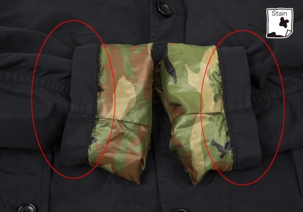 袖裏に薄汚れ、後ろ左袖にダメージがあります(写真参照)。その他に目立ったシミ、汚れ、ほつれ等なくいい状態です。クリーニング済み