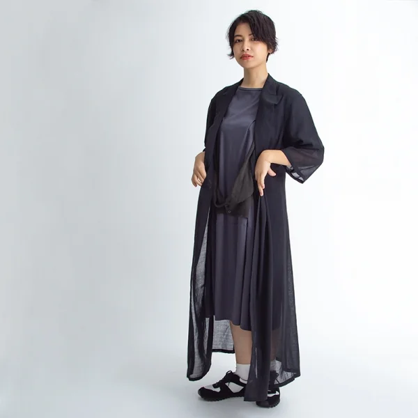ワイズY's サマーウールボタンレスロングジャケット 黒S