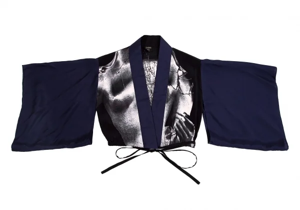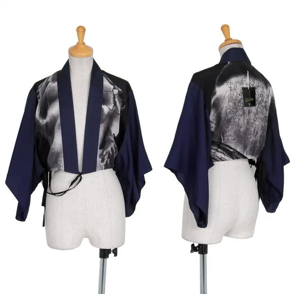 ジャンポールゴルチエ ファムJean Paul GAULTIER FEMME シルクグラフィック着物ボレロ 紺40