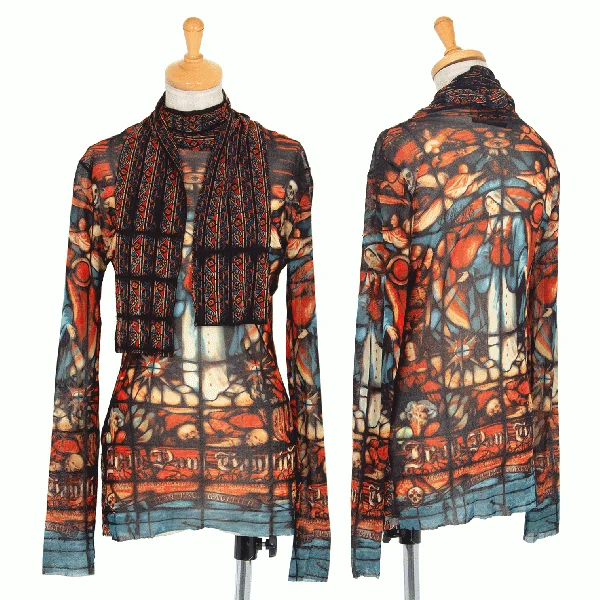 ジャンポールゴルチエ マイユJean Paul GAULTIER MAILLE マリアプリントストールパワネットカットソー マルチL