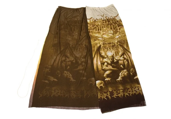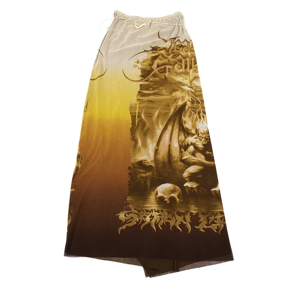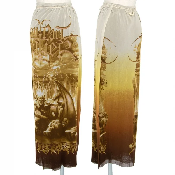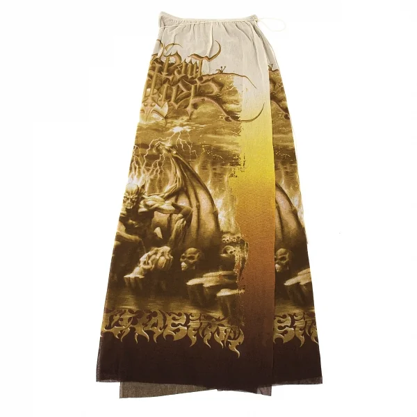ジャンポールゴルチエ マイユJean Paul GAULTIER AILLE ガーゴイルプリントパワーネット巻きスカート ベージュM