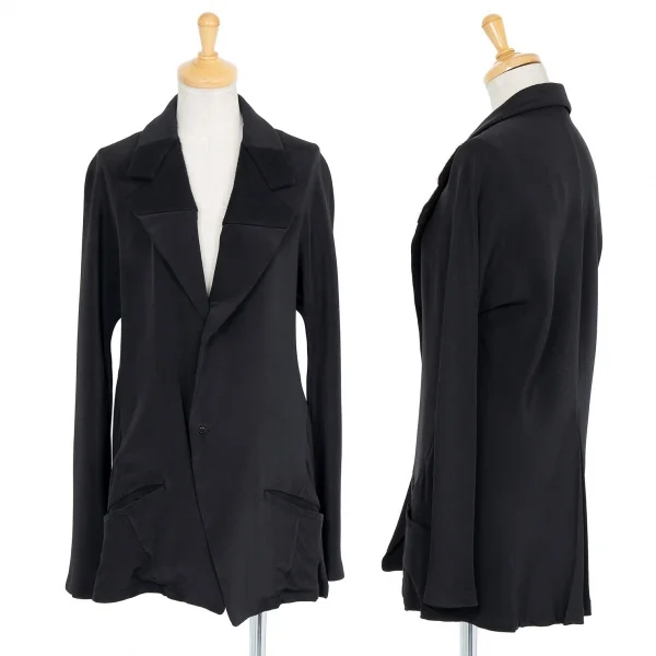 ヨウジヤマモト ファムYohji Yamamoto FEMME ラペル切替デザインシルクセットアップ 黒S/SS