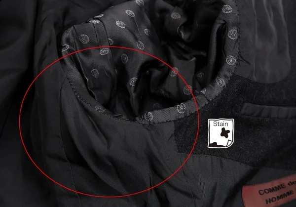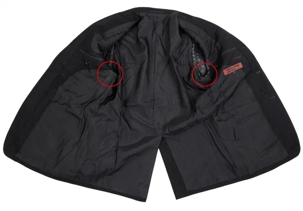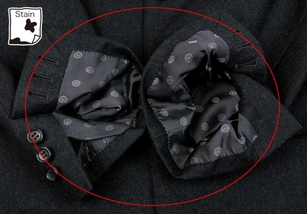 袖裏・脇裏に薄汚れがあります(画像参照)。その他に目立ったシミ、汚れ、ほつれ等ありません。クリーニング済み