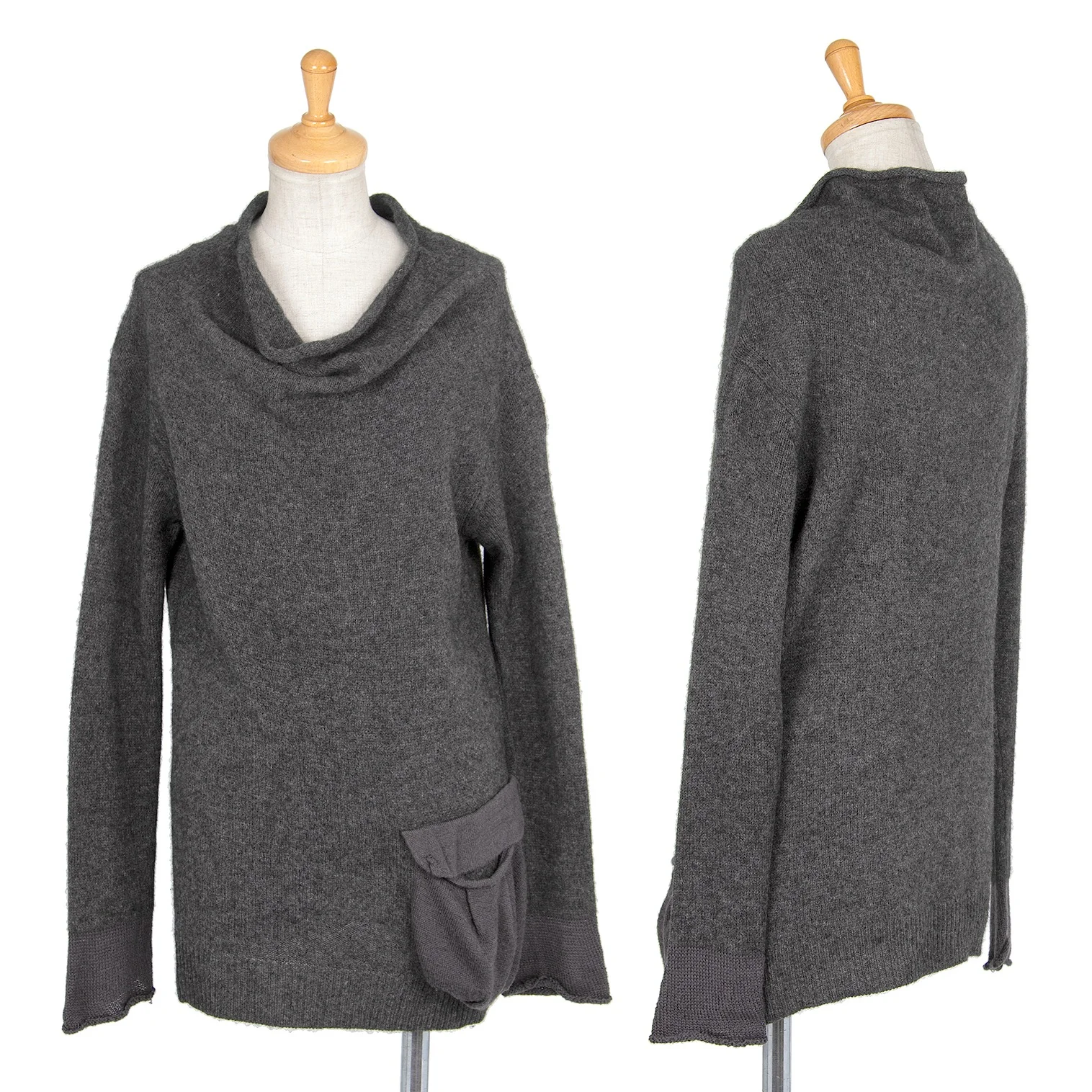 ワイズY's ドレープハイネックニットセーター チャコール2