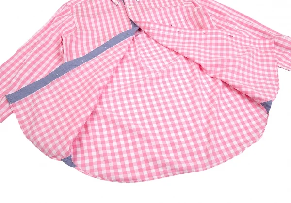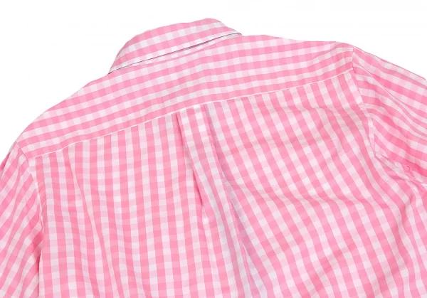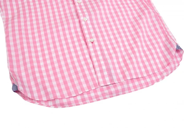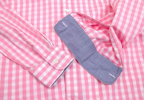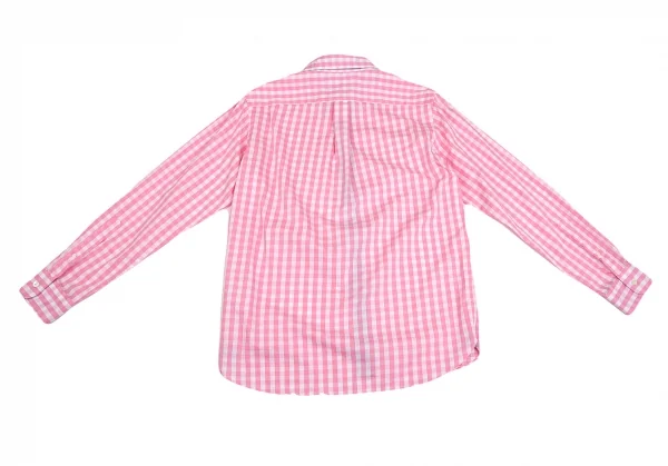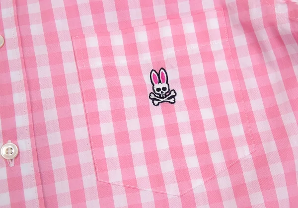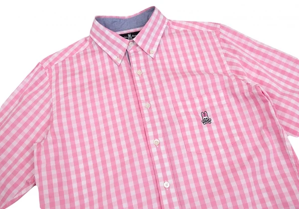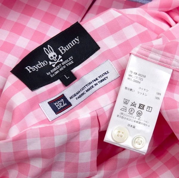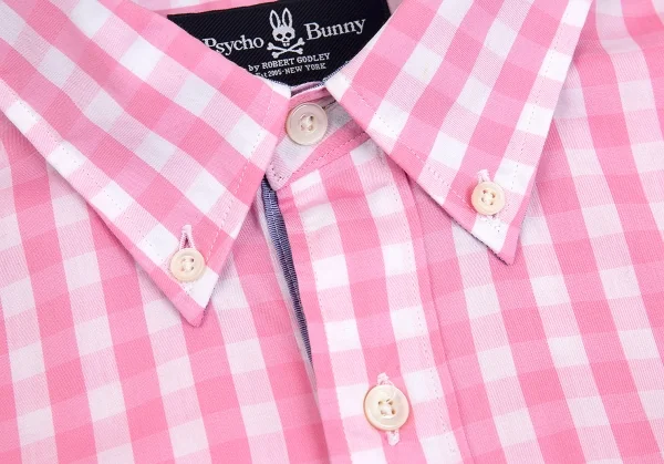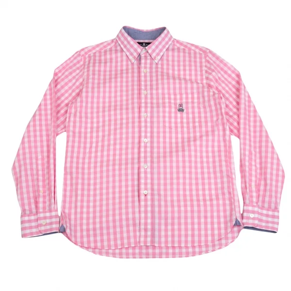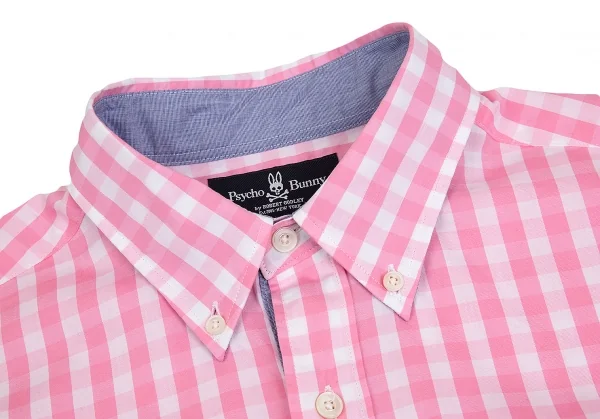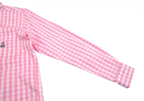 サイコバニーpsycho bunny ギンガムチェック刺繍長袖シャツ ピンクオフL