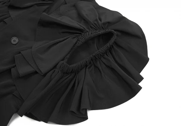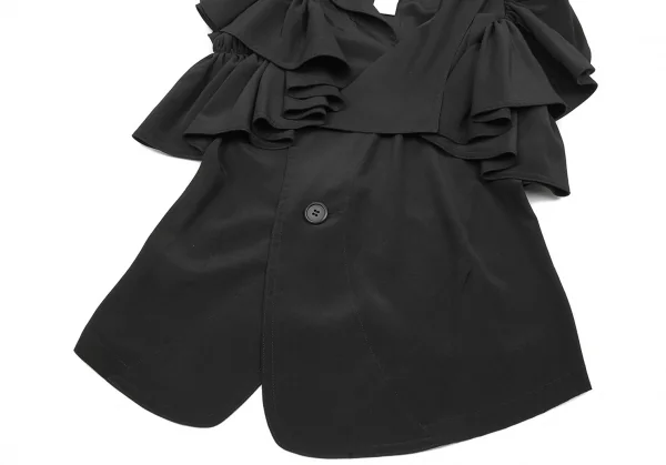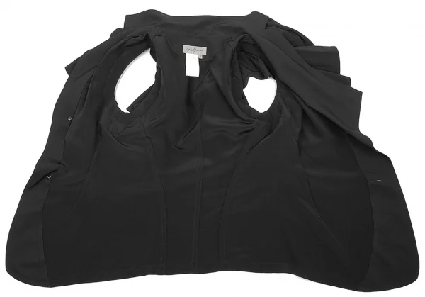 ヨウジヤマモト ファムYohji Yamamoto FEMME シルクラッフル装飾ノースリーブジャケット 黒1