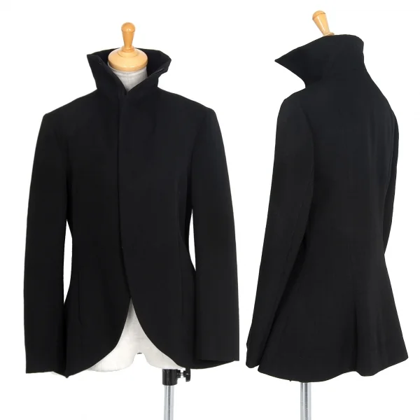ヨウジヤマモト ファムYohji Yamamoto FEMME ウールオールドギャバジップアップスタンドカラージャケット 黒1