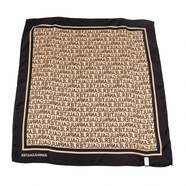 ジャンポールゴルチエJean Paul GAULTIER シルクロゴスカーフ 黒ベージュ