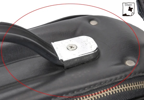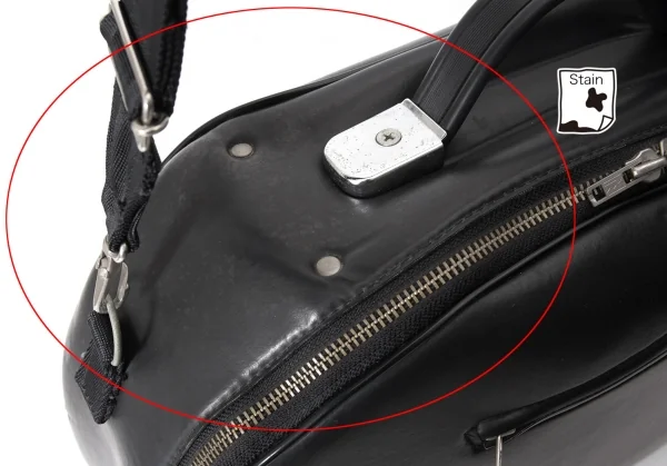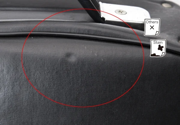 背面にヘコみ・薄汚れ、金具にサビ、前・金具周り汚れ、内側にシミがあります(写真参照)。その他に目立った傷や汚れなどなくいい状態です。