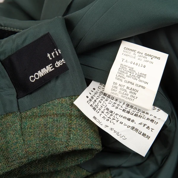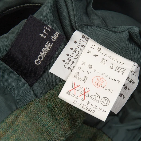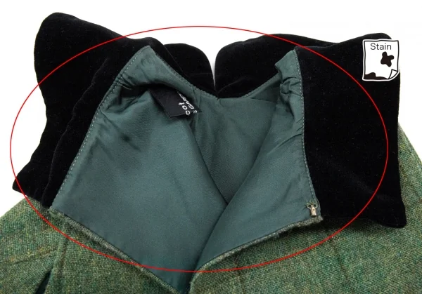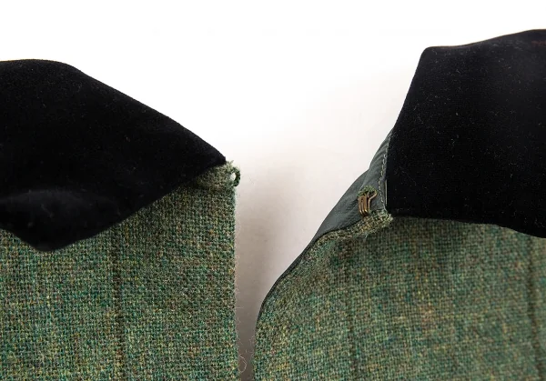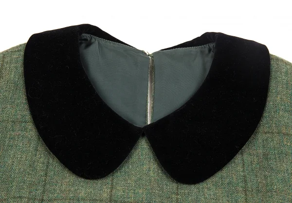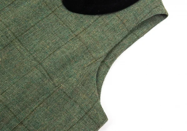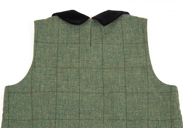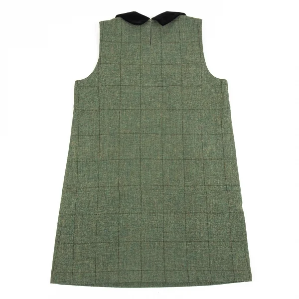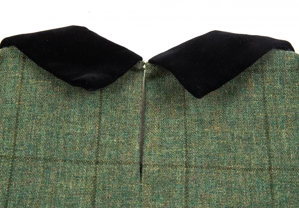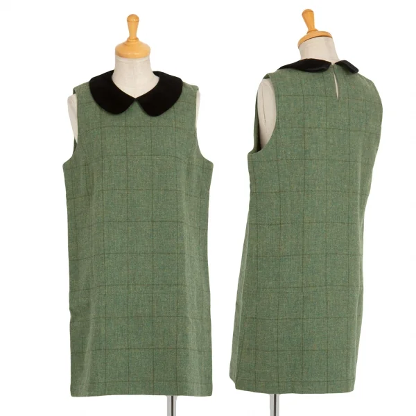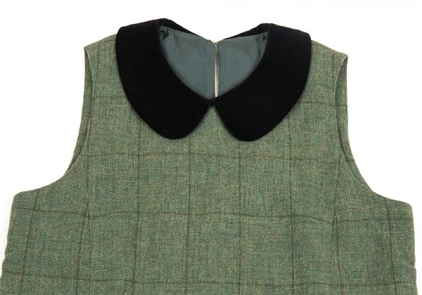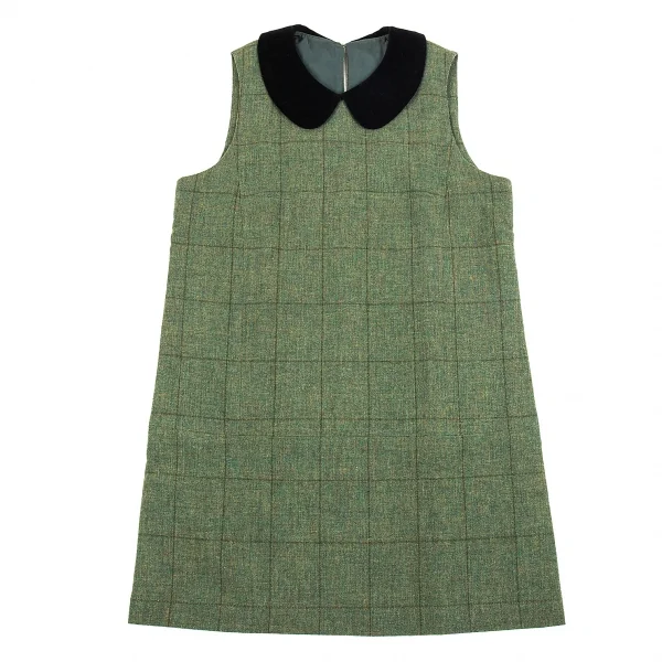 トリコ コムデギャルソンtricot COMME des GARCONS ベロア丸襟切替チェックノースリーブワンピース 緑黒M位