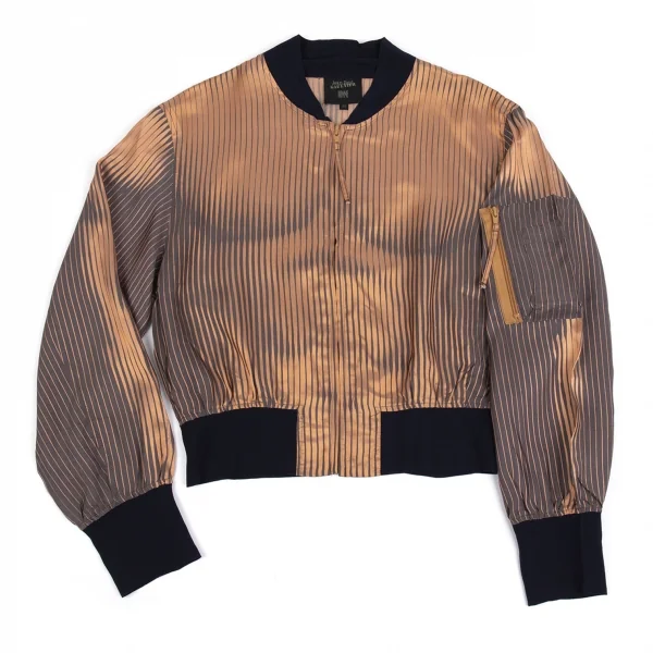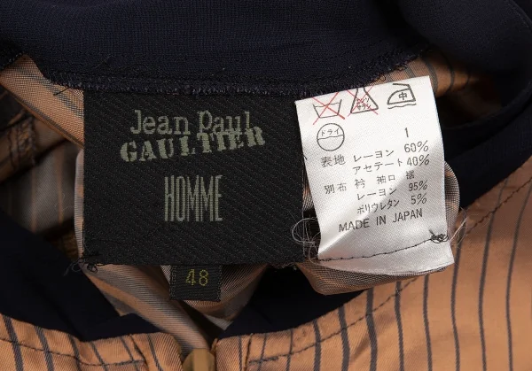 ジャンポールゴルチエ オムJean Paul GAULTIER HOMME ストライプボディグラフィックMA-1シャツブルゾン 淡オレンジ紺48