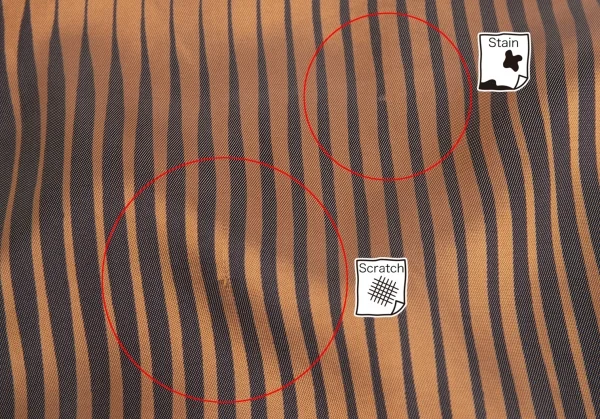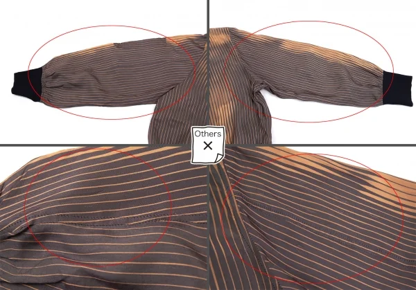 両袖に色むら、後ろに引っ掛け・薄汚れがあります(写真参照)。その他に目立ったシミ、汚れ、ほつれ等はありません。クリーニング済み