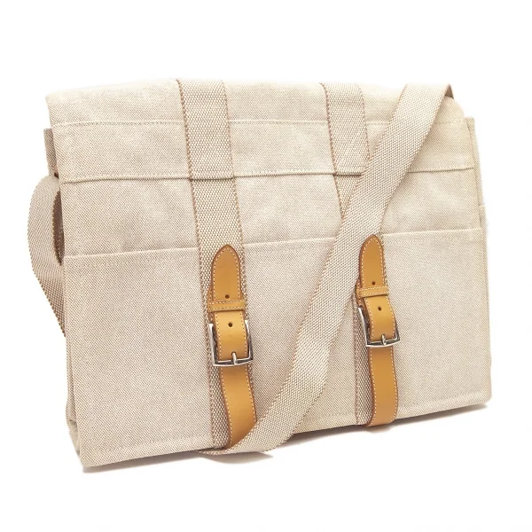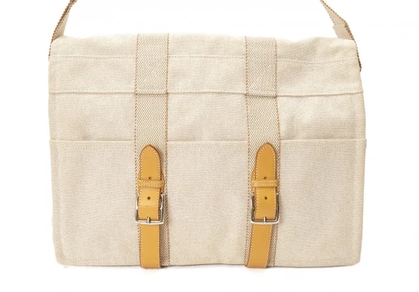 エルメスHERMES トワルアッシュレザーベルトフラップショルダーバッグ 生成り