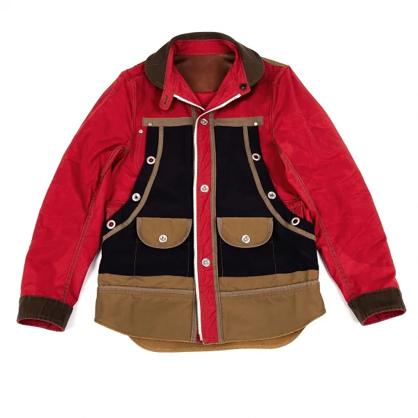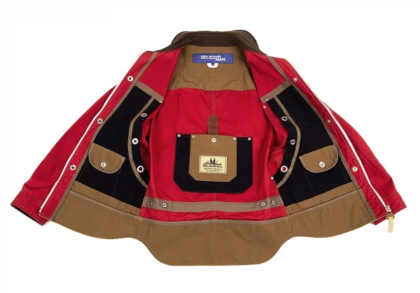 ジュンヤワタナベマン コムデギャルソン×サイルマーシャルJUNYA WATANABE MAN COMME des GARCONS レザー切替リバーシブルジャケット 赤茶XS