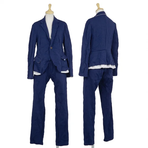 ワイズY's シワ加工生地切替ストレッチポリパンツ 青2