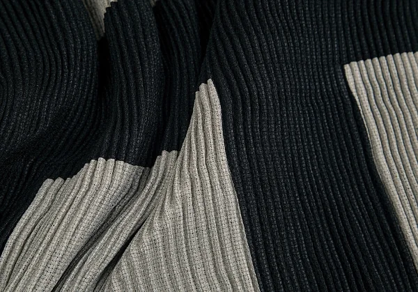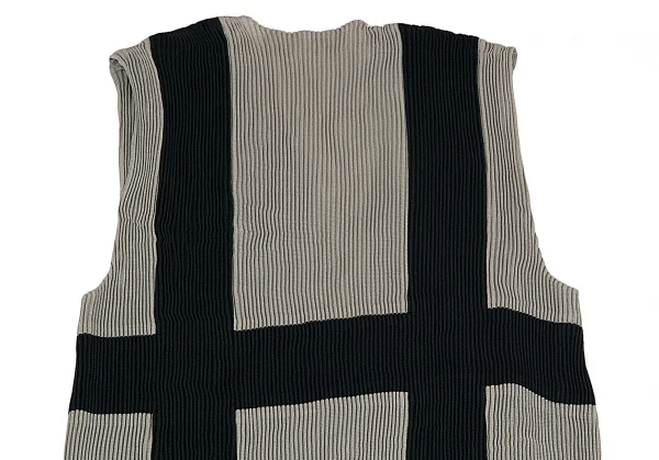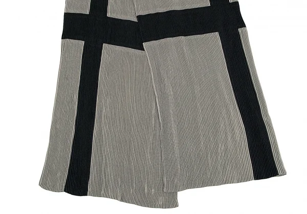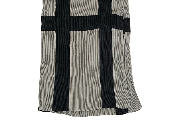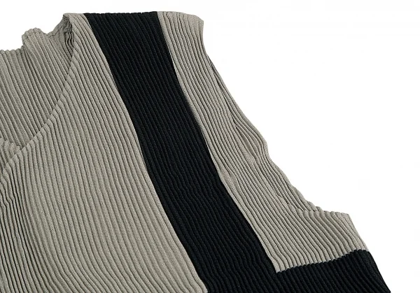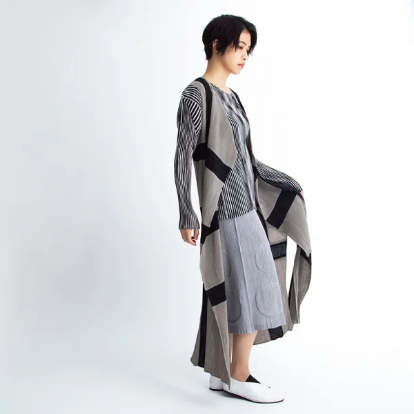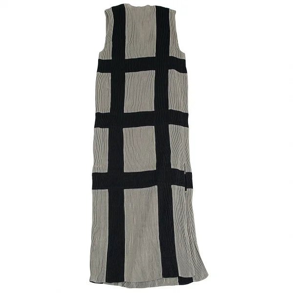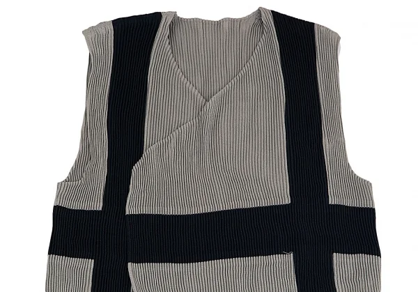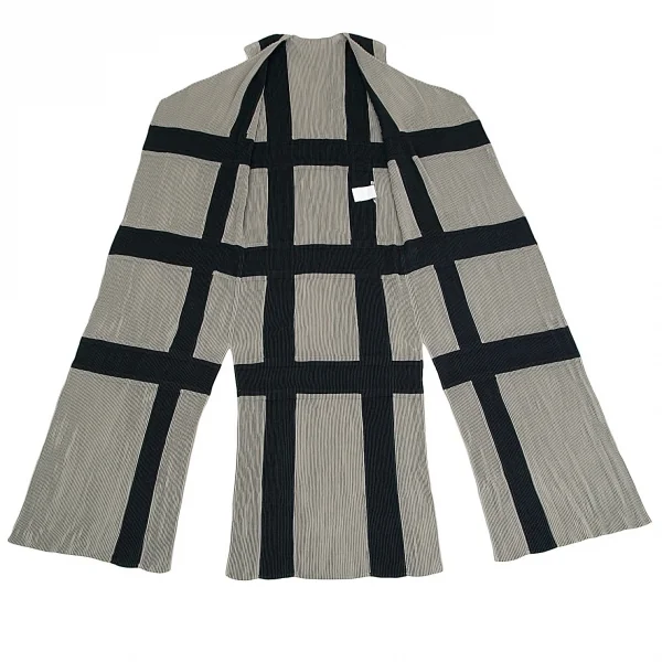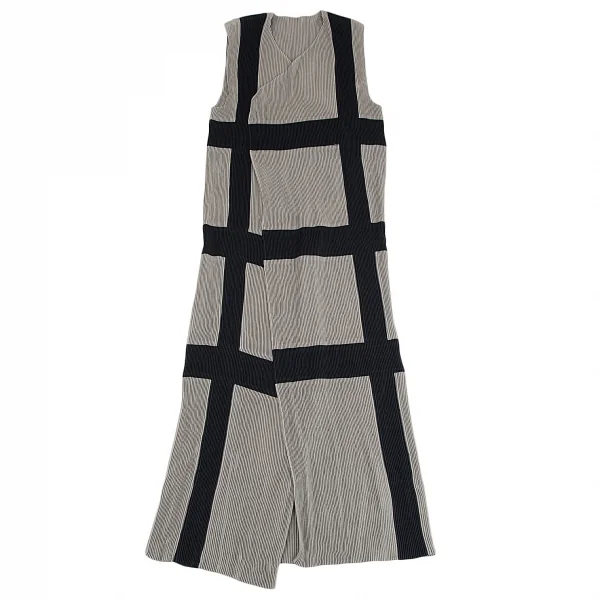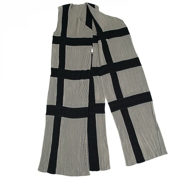 イッセイミヤケISSEY MIYAKE格子柄プリーツロングジレ 黒グレーM