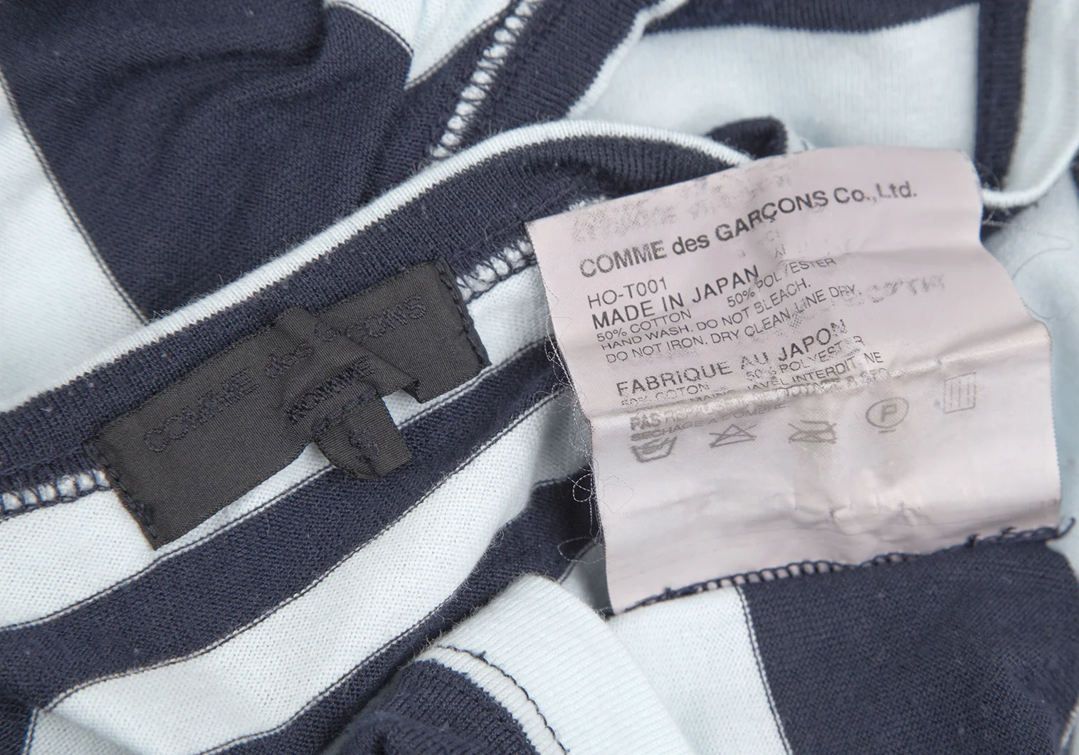 コムデギャルソン オムCOMME des GARCONS HOMME ボーダー切替デザイン半袖Tシャツ 水色紺S