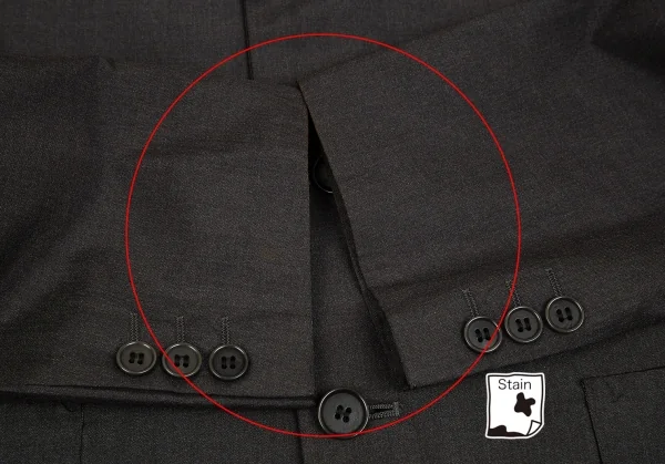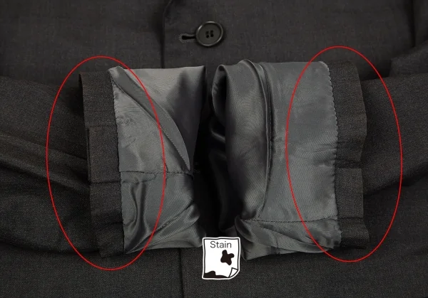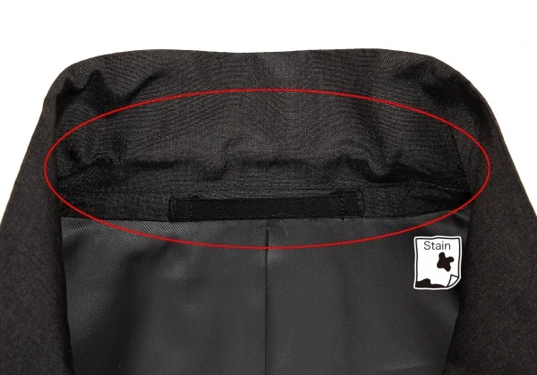 肩パッドあり。襟裏に薄汚れ、袖先・袖裏に汚れがあります(画像参照)。その他目立ったシミ、汚れ、ほつれ等ありません。クリーニング済み