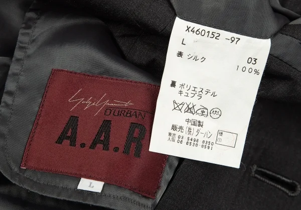 ヨウジヤマモト ダーバンYohji Yamamoto DURBAN A.A.R シルク3Bテーラードジャケット チャコールL