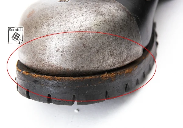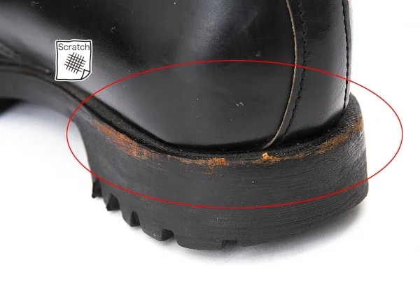 アッパー・ソールにキズ、左足にソール割れがあります。(写真参照)。ソールすり減り・全体的に使用感があります。