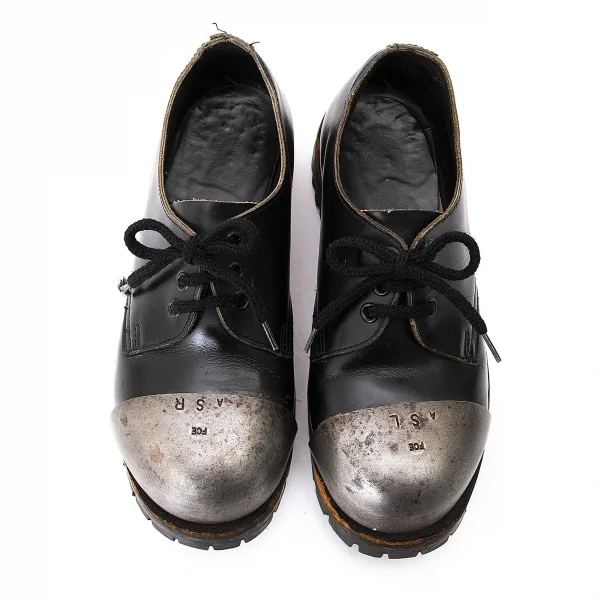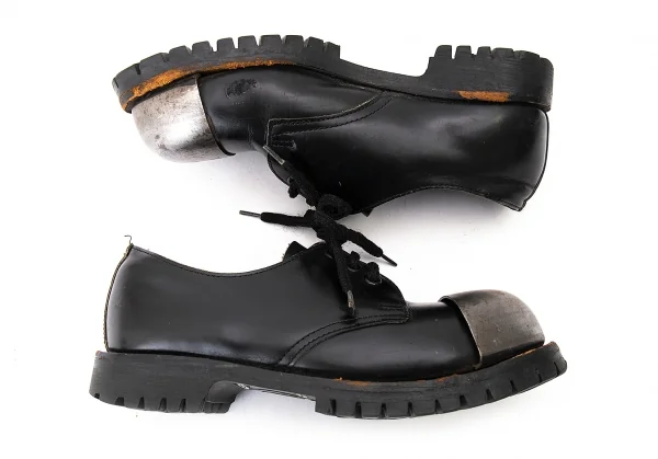 ゲッタグリップgetta grip スチールトゥレザー3ホールシューズ 黒シルバー23